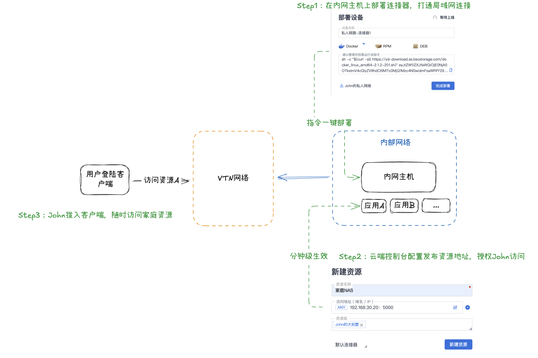 • 在内网环境中部署 VTN 连接器,完成网络打通验证。