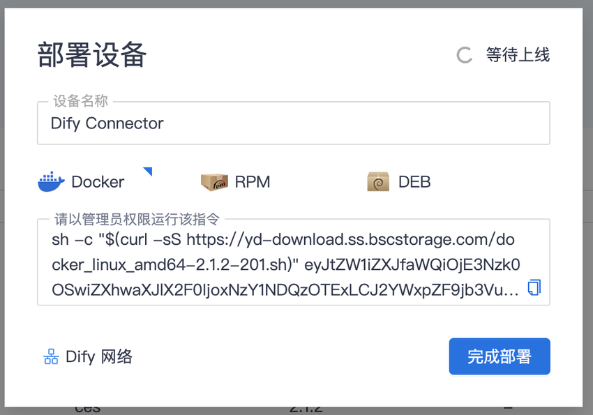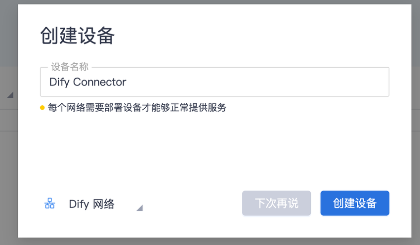 连接器设备需要绑定在刚刚创建的 Dify 网络下