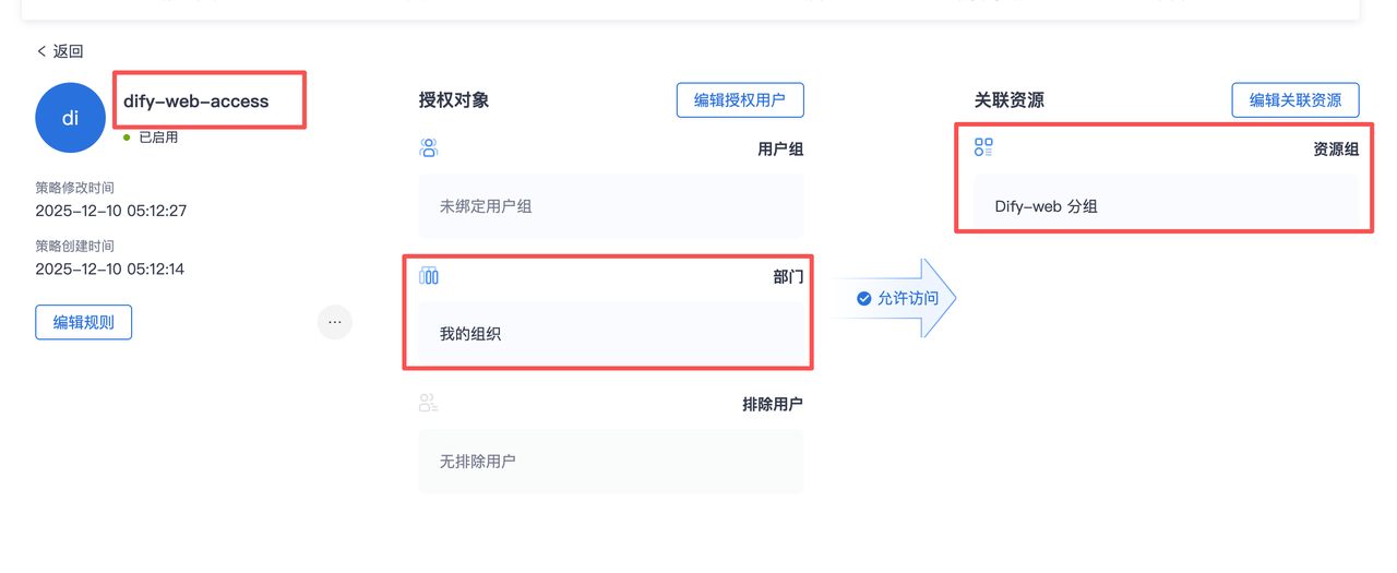 并允许 我的组织 下的用户访问资源组 dify-web 的所有应用