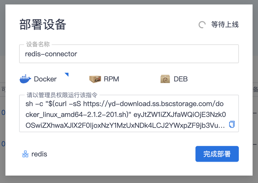 连接器设备需要绑定在刚刚创建的 redis 网络下