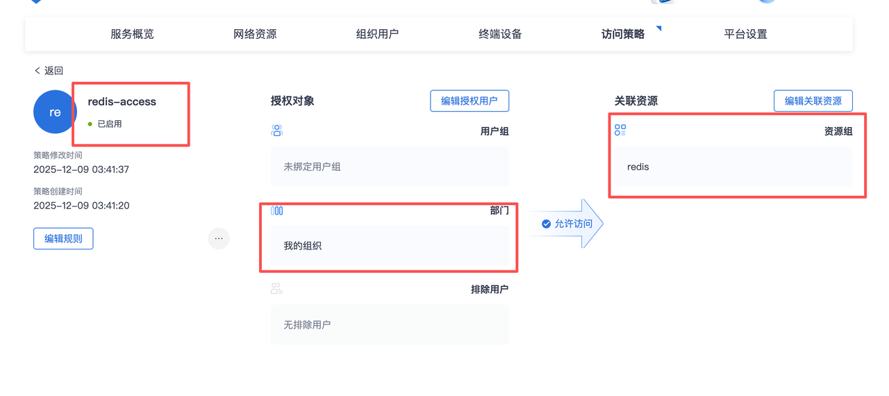 新建一个新的访问策略 redis-access